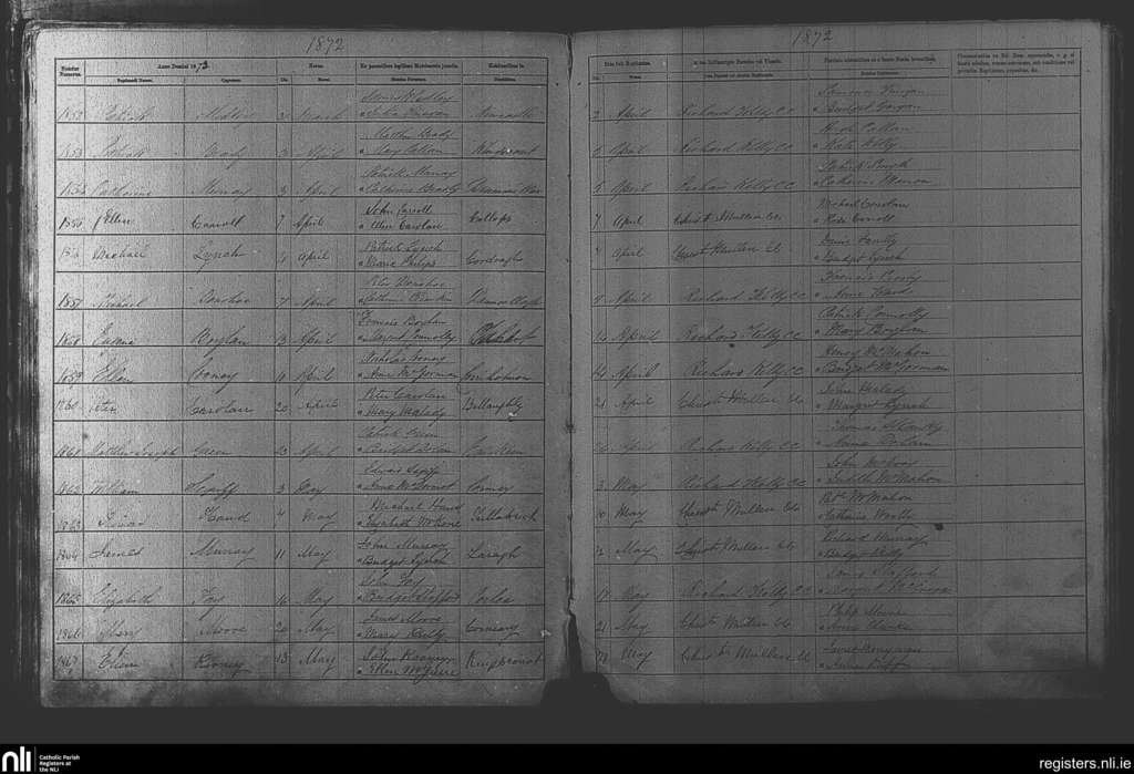 Kingscourt; County of Cavan, Meath; Diocese of Meath. Baptisms, Apr. 1872 to May 1872