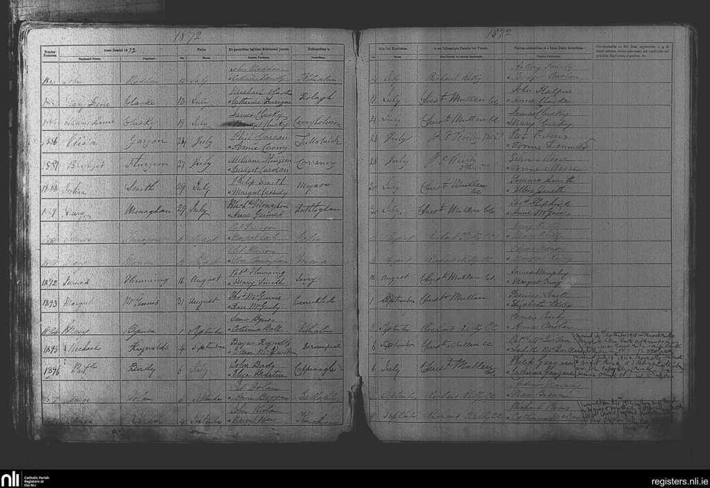 Kingscourt; County of Cavan, Meath; Diocese of Meath. Baptisms, July 1872 to Sep. 1872