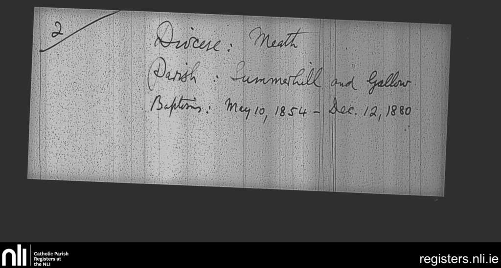 Summerhill; County of Meath; Diocese of Meath. Baptisms