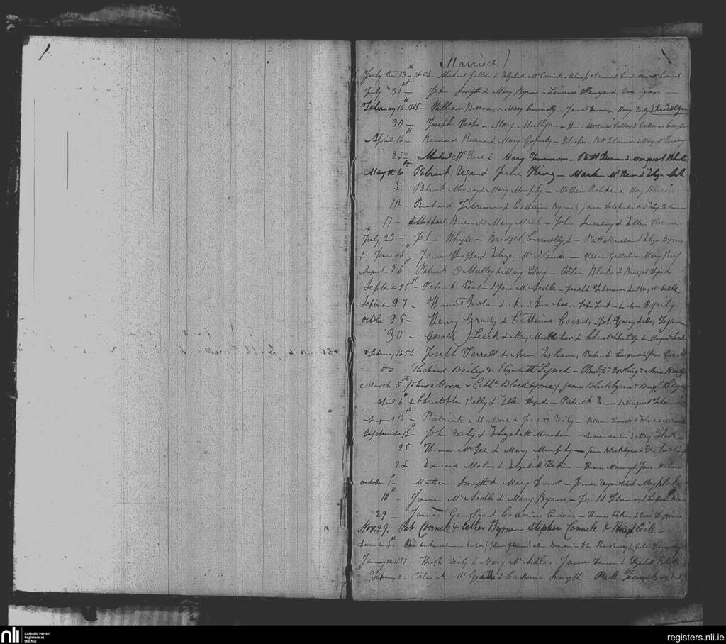 Summerhill; County of Meath; Diocese of Meath. Marriages, July 1854 to Feb. 1857