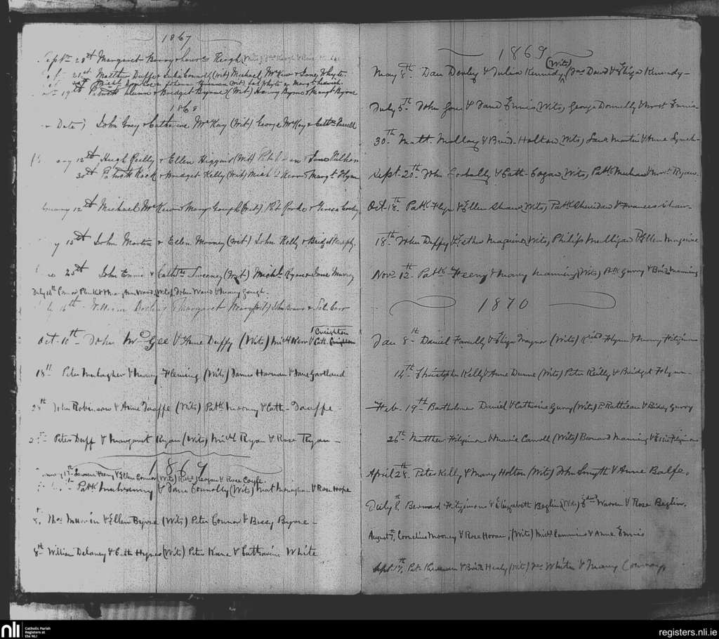 Summerhill; County of Meath; Diocese of Meath. Marriages, Sep. 1867 to Sep. 1870