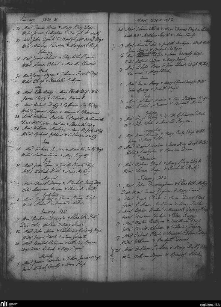 Moynalvey; County of Meath; Diocese of Meath. Marriages, Jan. 1820 to Feb. 1822