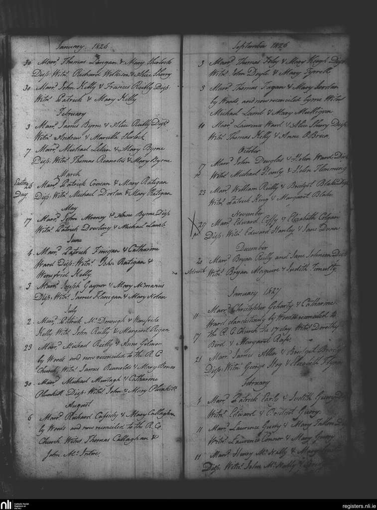 Moynalvey; County of Meath; Diocese of Meath. Marriages, Jan. 1826 to Feb. 1827