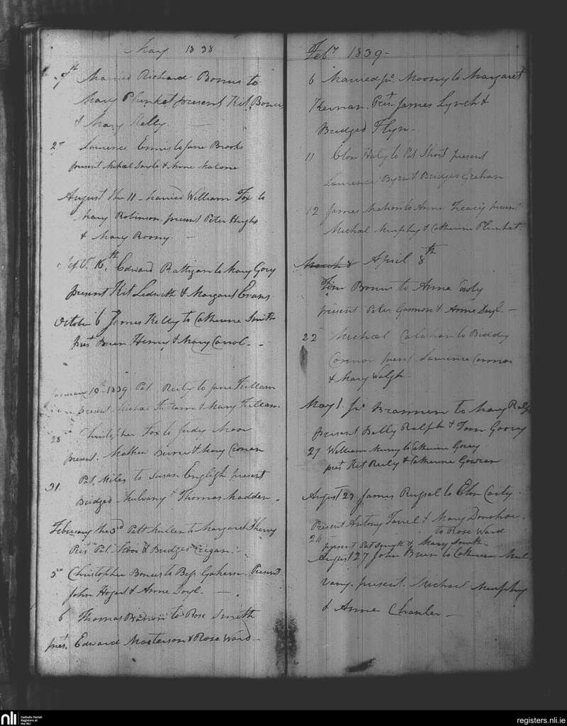 Moynalvey; County of Meath; Diocese of Meath. Marriages, May 1838 to Aug. 1839
