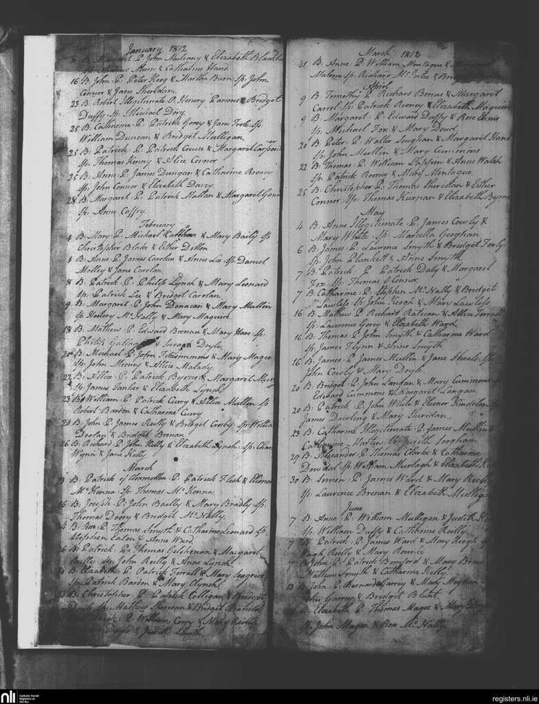 Moynalvey; County of Meath; Diocese of Meath. Baptisms, Jan. 1812 to June 1812