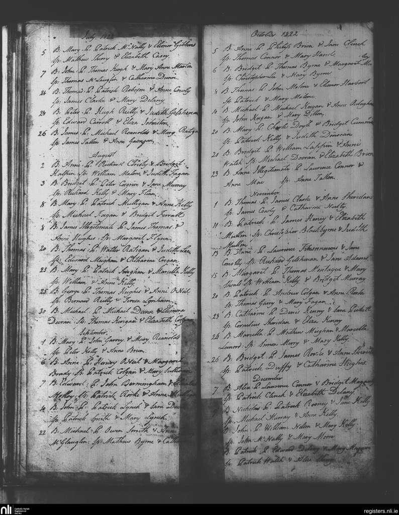 Moynalvey; County of Meath; Diocese of Meath. Baptisms, July 1822 to Dec. 1822