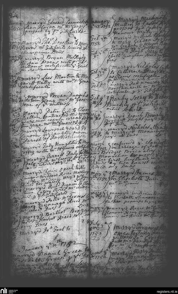 Mullingar; County of Westmeath; Diocese of Meath. Marriages, June 1751 to Aug. 1752