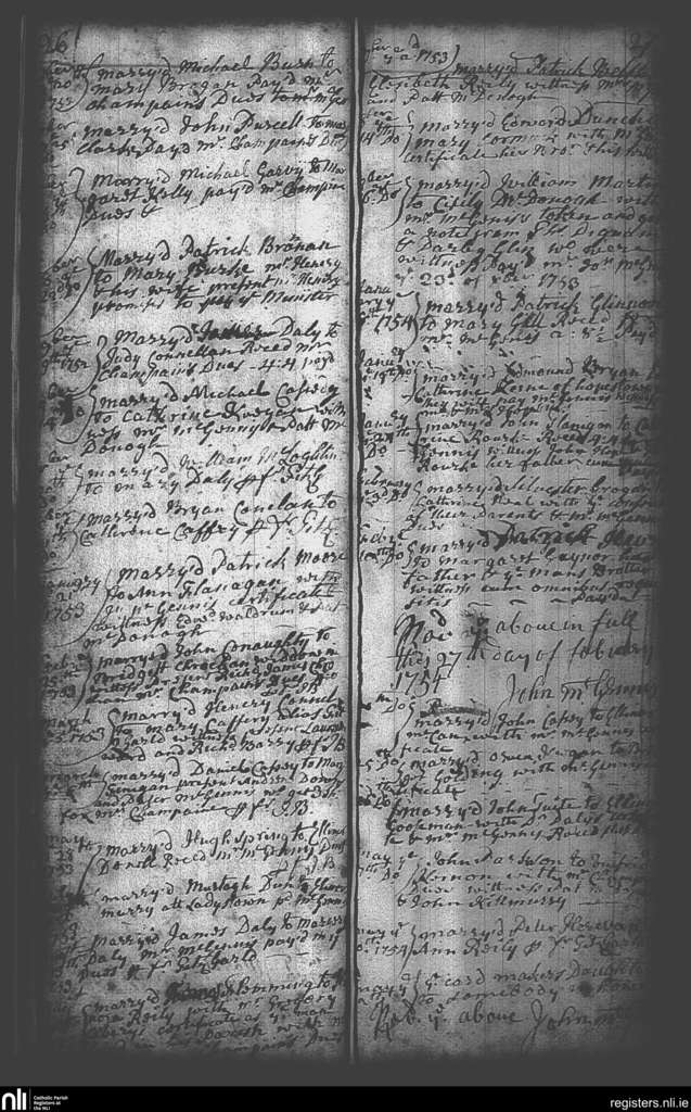 Mullingar; County of Westmeath; Diocese of Meath. Marriages, Sep. 1752 to Feb. 1754