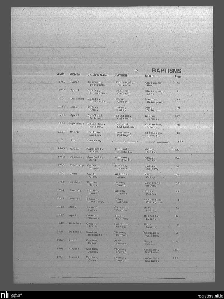 Mullingar; County of Westmeath; Diocese of Meath. Baptisms, Aug. 1742 to Apr. 1762