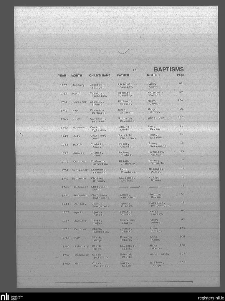 Mullingar; County of Westmeath; Diocese of Meath. Baptisms, Sep. 1742 to Oct. 1763