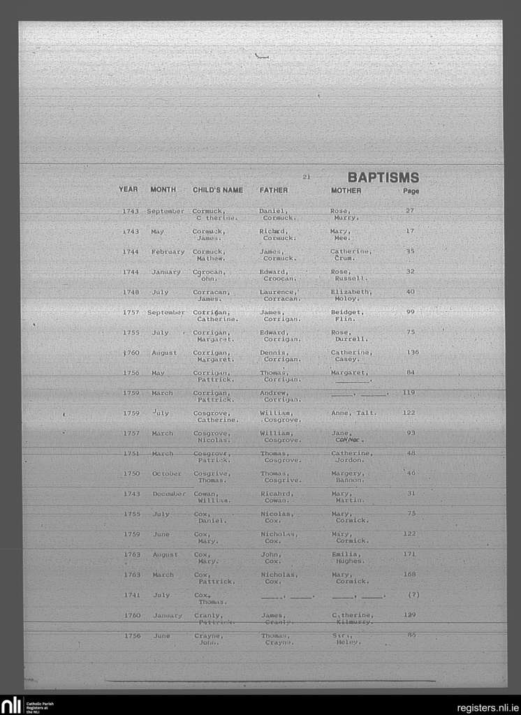 Mullingar; County of Westmeath; Diocese of Meath. Baptisms, May 1743 to Aug. 1763