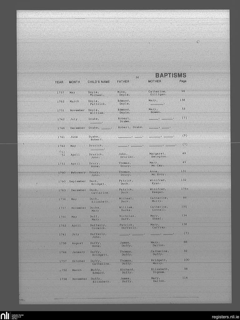 Mullingar; County of Westmeath; Diocese of Meath. Baptisms, June 1741 to Dec. 1763