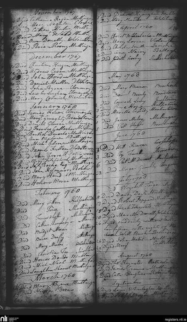 Mullingar; County of Westmeath; Diocese of Meath. Deaths, Nov. 1767 to Sep. 1768