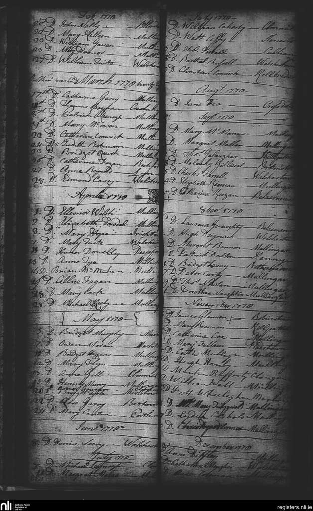 Mullingar; County of Westmeath; Diocese of Meath. Deaths, Feb. 1778 to Dec. 1778