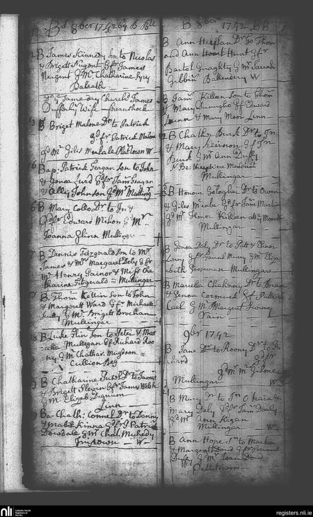 Mullingar; County of Westmeath; Diocese of Meath. Baptisms, Sep. 1742 to Nov. 1742