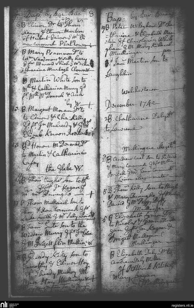 Mullingar; County of Westmeath; Diocese of Meath. Baptisms, Nov. 1742 to Dec. 1742