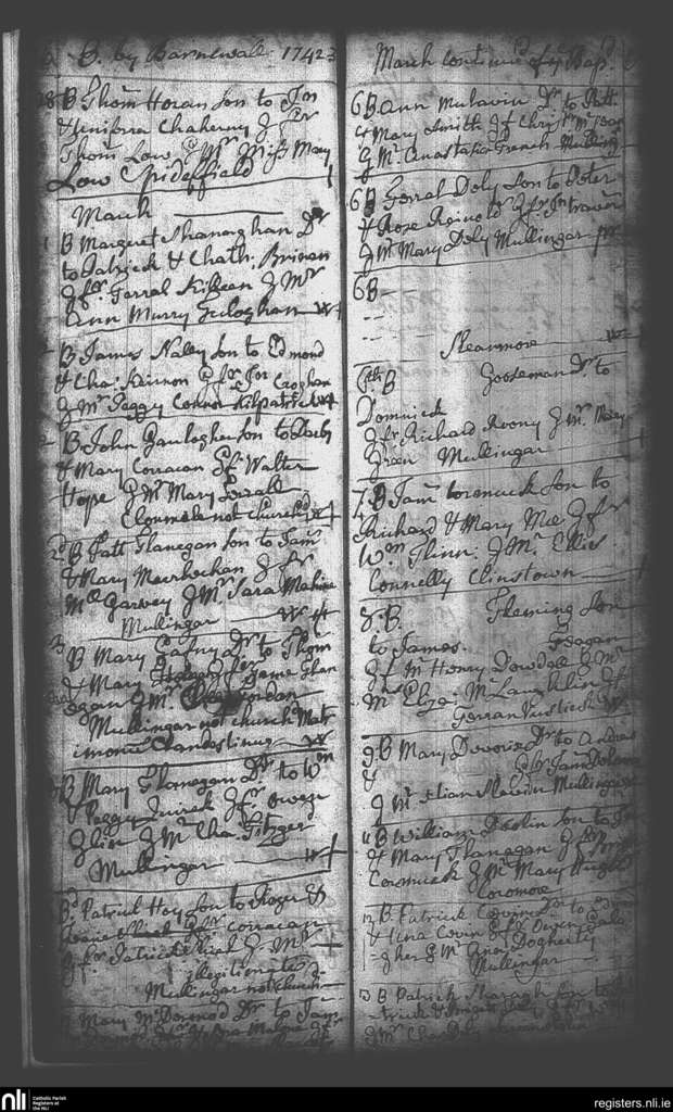 Mullingar; County of Westmeath; Diocese of Meath. Baptisms, Feb. 1743 to Mar. 1743