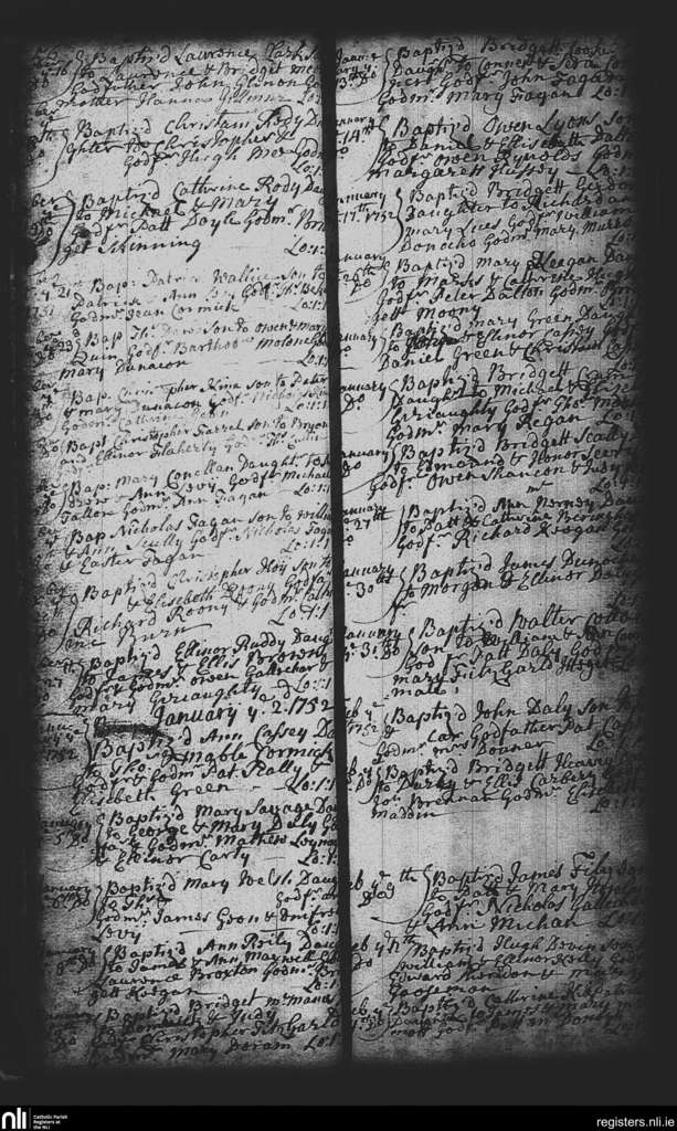 Mullingar; County of Westmeath; Diocese of Meath. Baptisms, Dec. 1751 to Feb. 1752