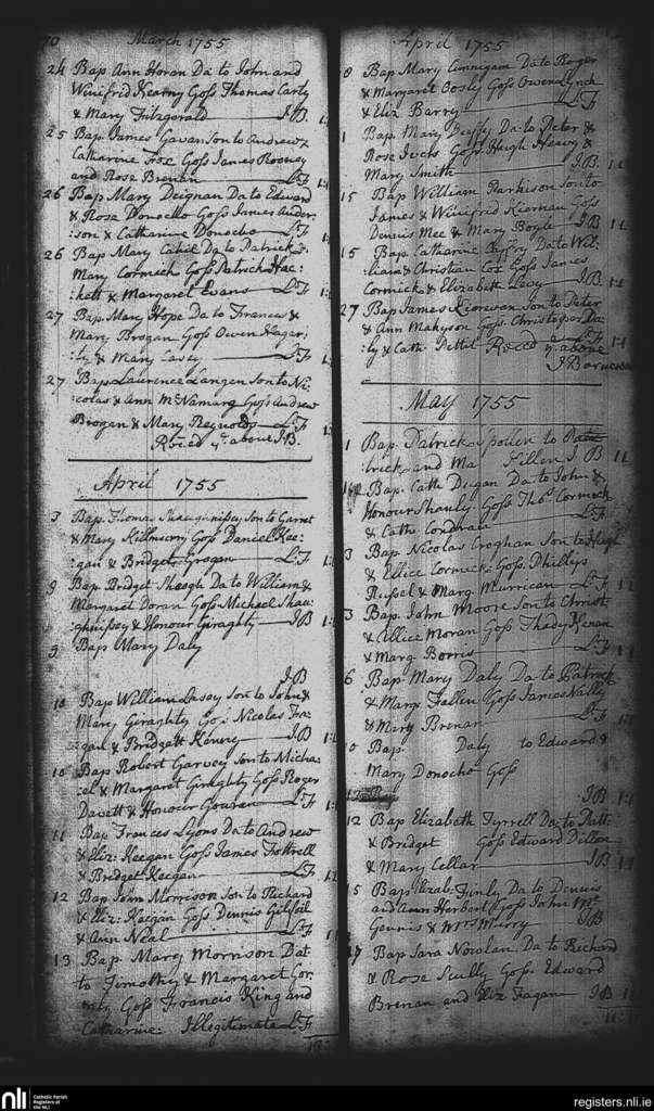 Mullingar; County of Westmeath; Diocese of Meath. Baptisms, Mar. 1755 to May 1755