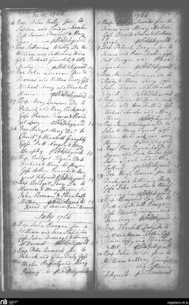 Mullingar; County of Westmeath; Diocese of Meath. Baptisms, June 1764 to July 1764
