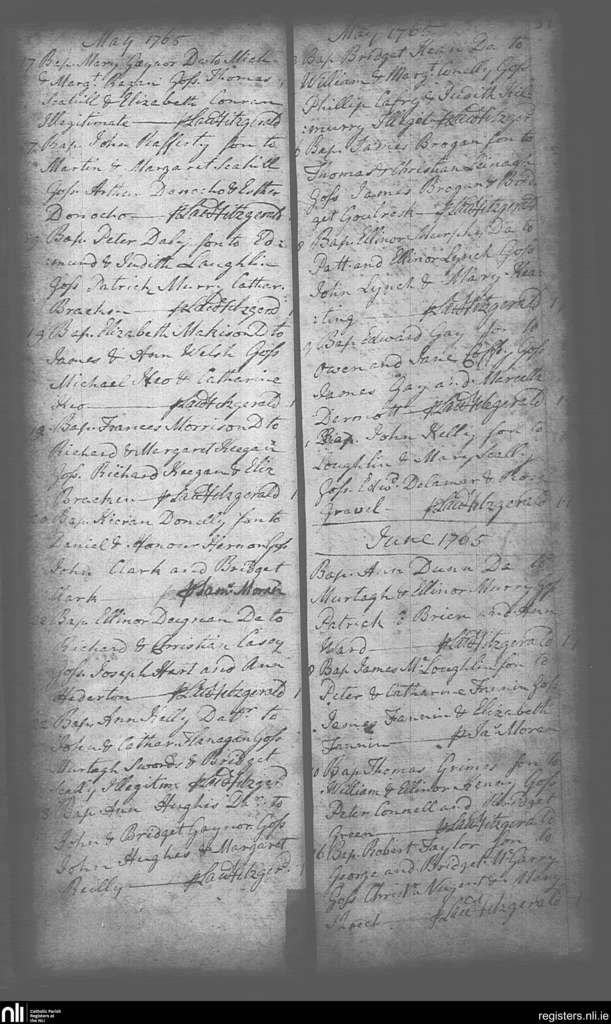 Mullingar; County of Westmeath; Diocese of Meath. Baptisms, May 1765 to June 1765