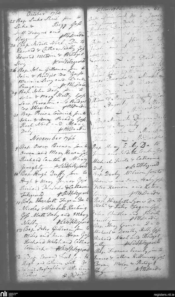 Mullingar; County of Westmeath; Diocese of Meath. Baptisms, Oct. 1766 to Nov. 1766