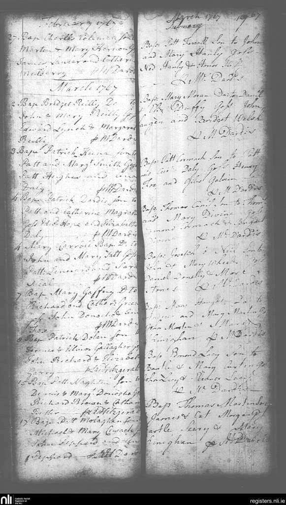 Mullingar; County of Westmeath; Diocese of Meath. Baptisms, Feb. 1767 to Mar. 1767