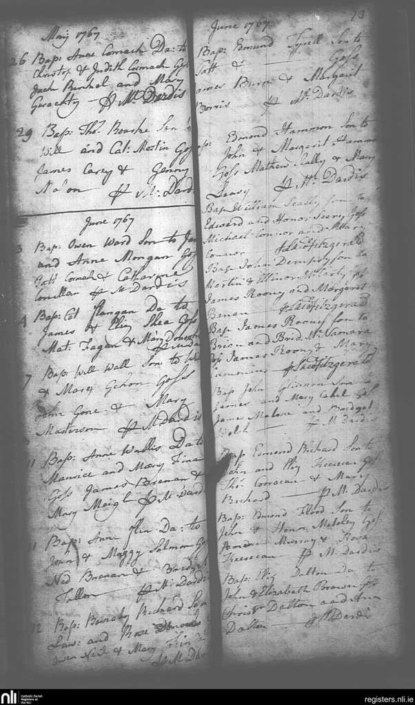 Mullingar; County of Westmeath; Diocese of Meath. Baptisms, May 1767 to June 1767