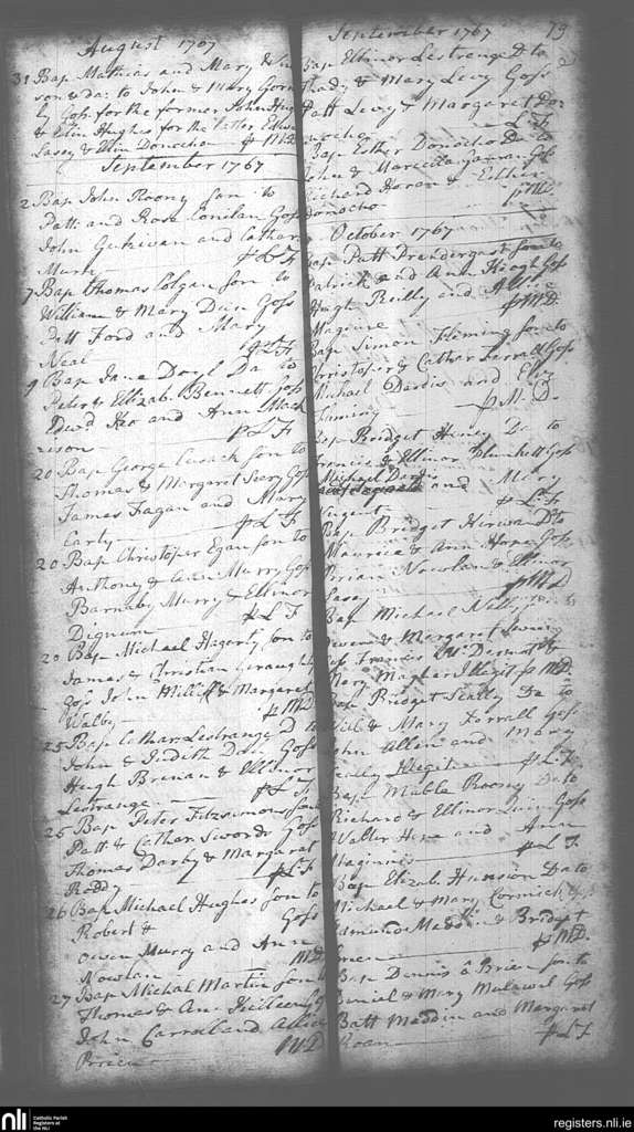 Mullingar; County of Westmeath; Diocese of Meath. Baptisms, Aug. 1767 to Oct. 1767
