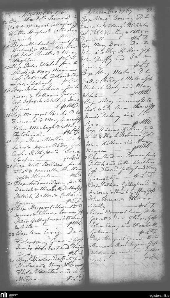 Mullingar; County of Westmeath; Diocese of Meath. Baptisms, Nov. 1767