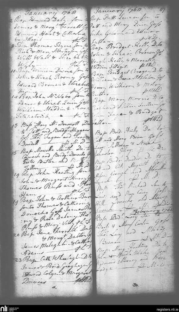Mullingar; County of Westmeath; Diocese of Meath. Baptisms, Jan. 1768 to Feb. 1768