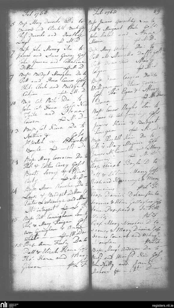 Mullingar; County of Westmeath; Diocese of Meath. Baptisms, Feb. 1768