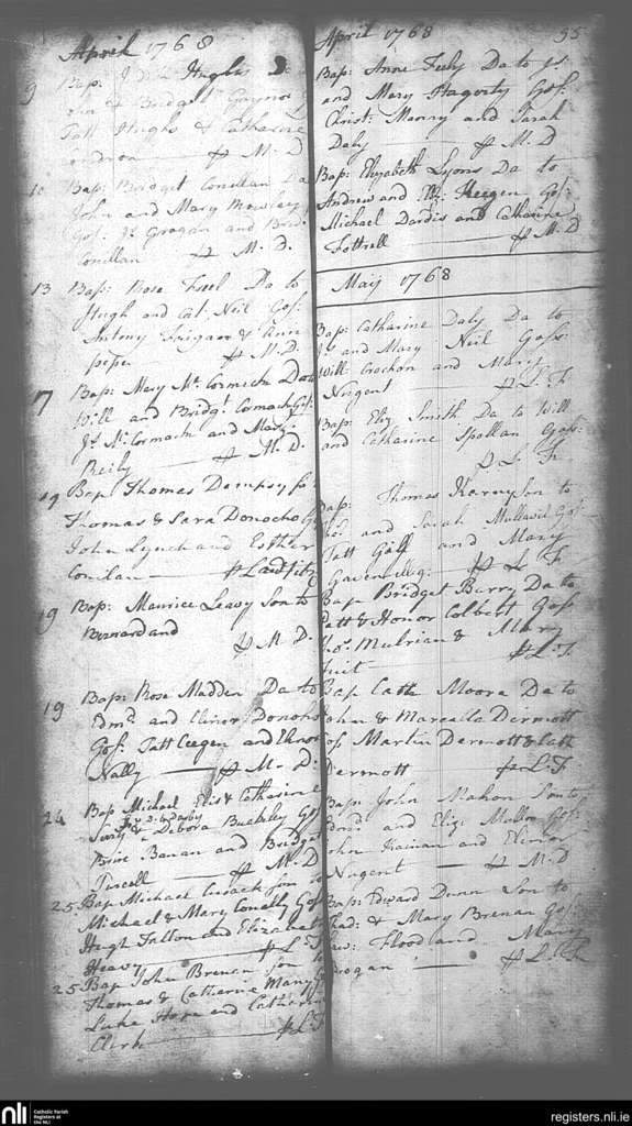 Mullingar; County of Westmeath; Diocese of Meath. Baptisms, Apr. 1768 to May 1768