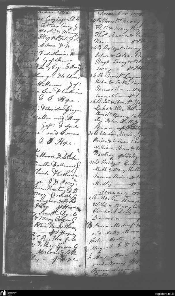 Mullingar; County of Westmeath; Diocese of Meath. Baptisms, Dec. 1775 to Jan. 1776
