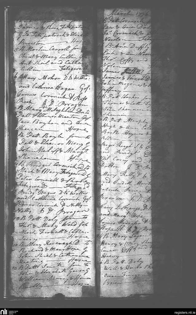 Mullingar; County of Westmeath; Diocese of Meath. Baptisms, Mar. 1776