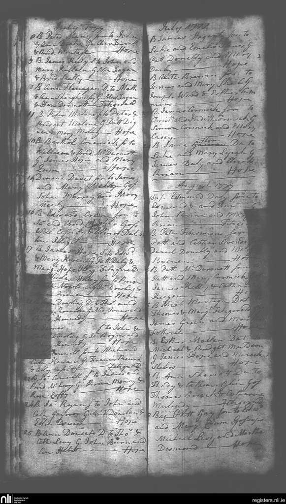 Mullingar; County of Westmeath; Diocese of Meath. Baptisms, July 1777 to Aug. 1777