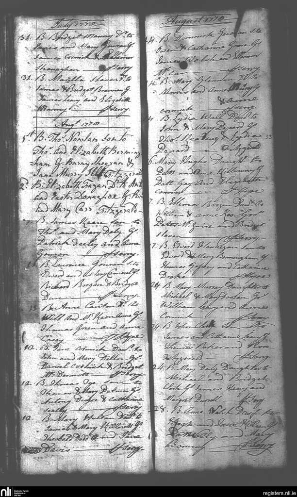 Mullingar; County of Westmeath; Diocese of Meath. Baptisms, July 1778 to Aug. 1778