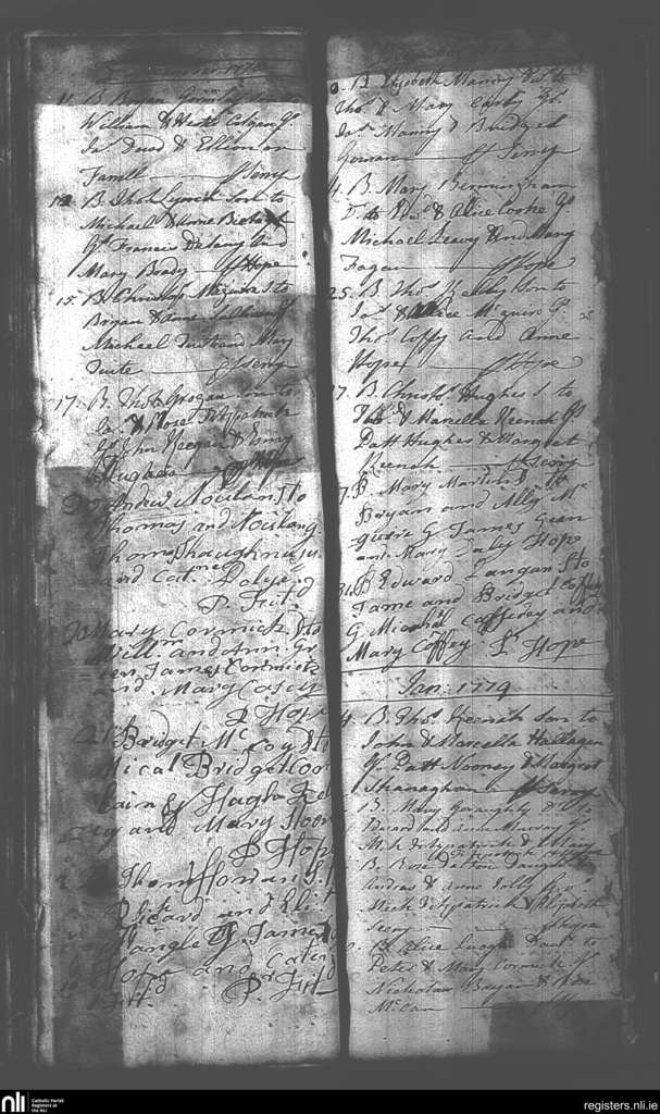 Mullingar; County of Westmeath; Diocese of Meath. Baptisms, Dec. 1778 to Jan. 1779