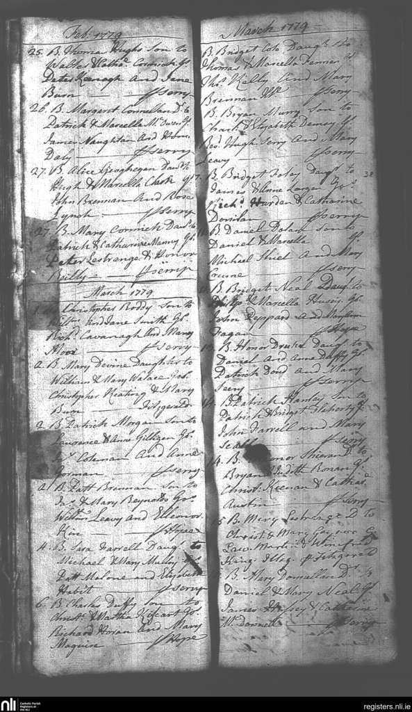 Mullingar; County of Westmeath; Diocese of Meath. Baptisms, Feb. 1779 to Mar. 1779