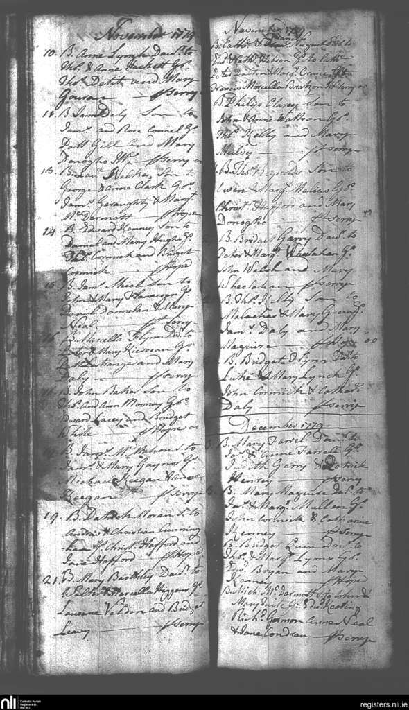 Mullingar; County of Westmeath; Diocese of Meath. Baptisms, Nov. 1779 to Dec. 1779