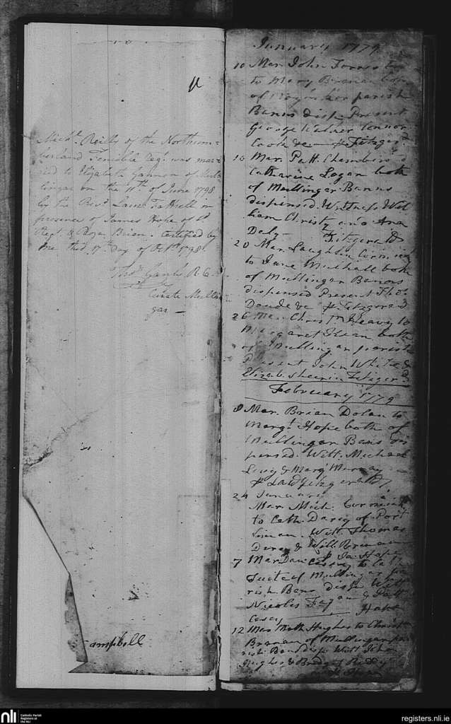 Mullingar; County of Westmeath; Diocese of Meath. Marriages, Jan. 1779 to Feb. 1779