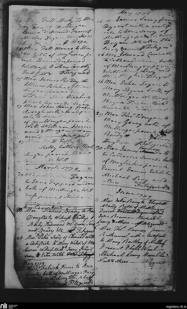 Mullingar; County of Westmeath; Diocese of Meath. Marriages, Feb. 1779 to June 1779