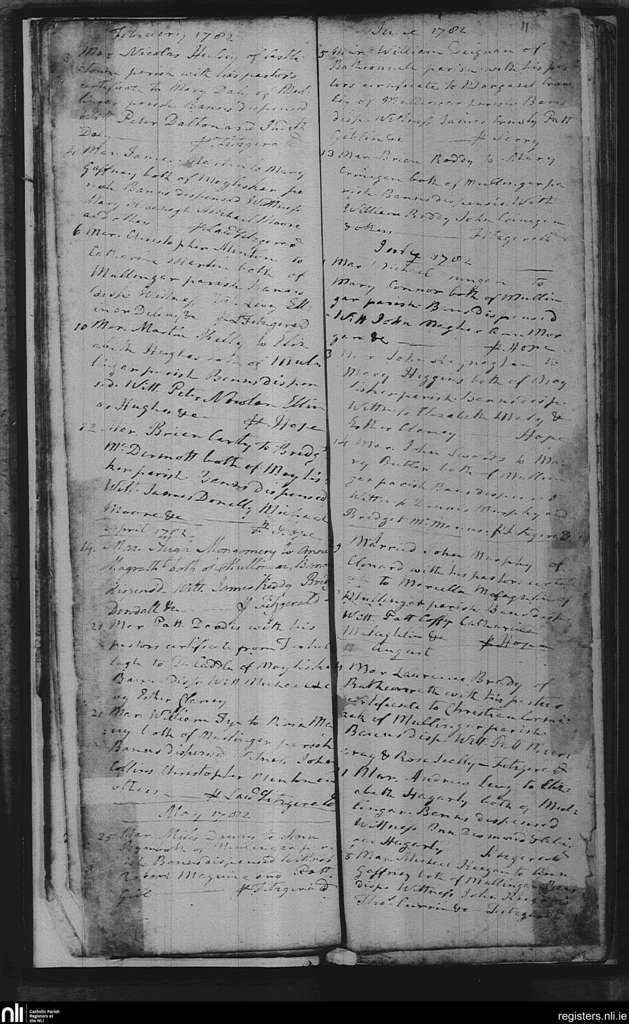 Mullingar; County of Westmeath; Diocese of Meath. Marriages, Feb. 1782 to Aug. 1782