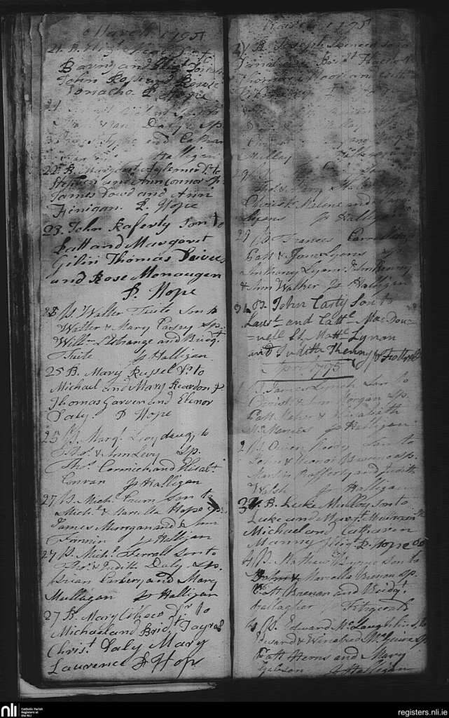 Mullingar; County of Westmeath; Diocese of Meath. Baptisms, Mar. 1795 to Apr. 1795
