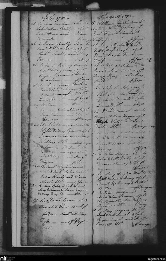 Mullingar; County of Westmeath; Diocese of Meath. Baptisms, July 1785 to Aug. 1785
