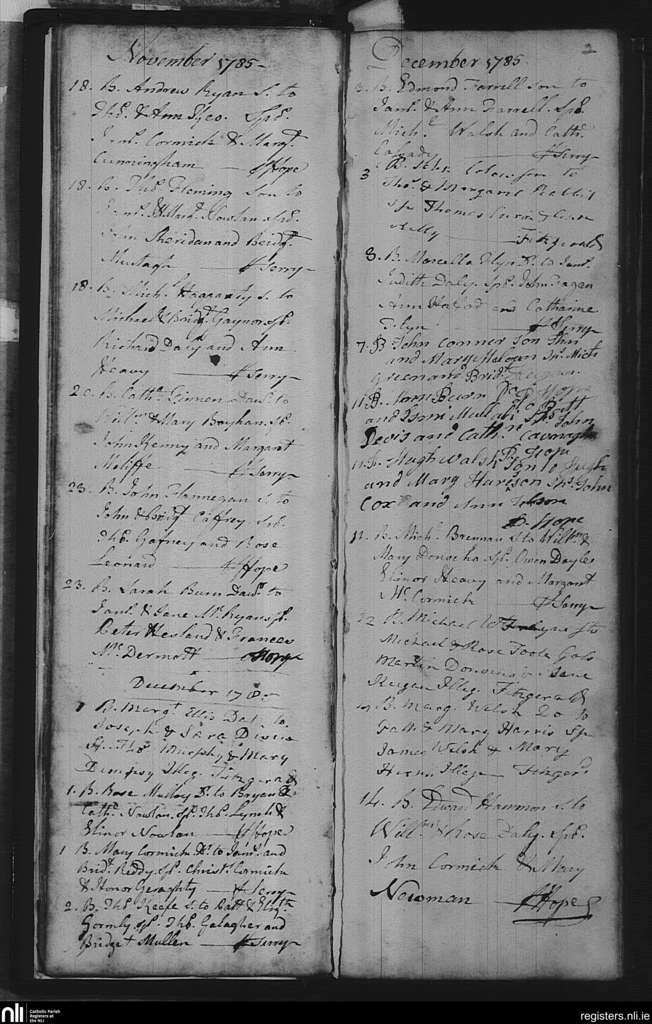 Mullingar; County of Westmeath; Diocese of Meath. Baptisms, Nov. 1785 to Dec. 1785