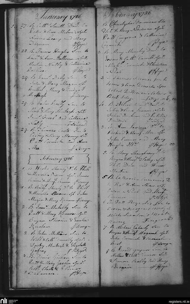 Mullingar; County of Westmeath; Diocese of Meath. Baptisms, Jan. 1786 to Feb. 1786