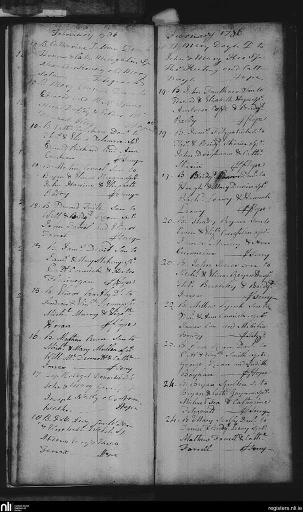 Mullingar; County of Westmeath; Diocese of Meath. Baptisms, Feb. 1786