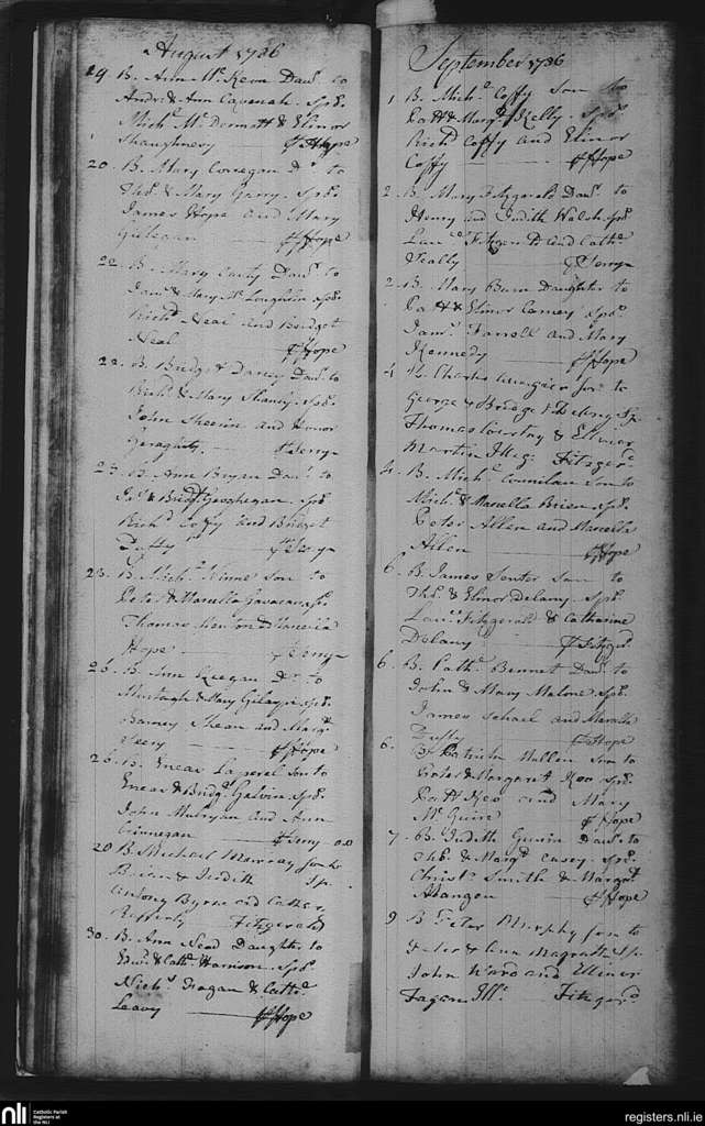 Mullingar; County of Westmeath; Diocese of Meath. Baptisms, Aug. 1786 to Sep. 1786