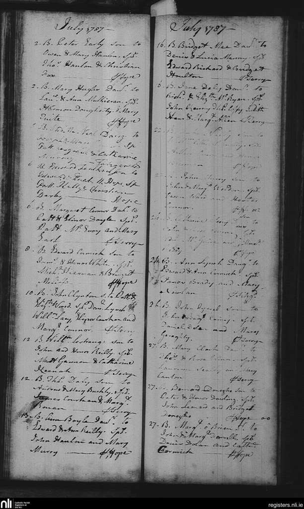 Mullingar; County of Westmeath; Diocese of Meath. Baptisms, July 1787